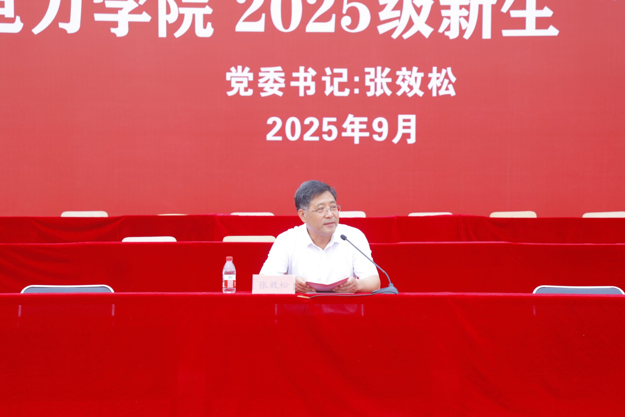 秋高气爽迎新人,硕果盈枝启征程。9月8日上午,水院绿茵场上朝气蓬勃,党委书记张效松以《厚植家国情怀 勇于挺膺担当 在信仰与传承中谱写青春华章》为题,为2025级全体新生讲授“开学第一课”。张效松首先围绕“什么是大学”以及“我们是所什么样的大学”展开讲解。他指出,学校四地办学、五迁校址的发展历程始终与祖国共命运、与时代同步伐,始终与中国共产党同心同向同行。他从四个方面勉励新生:铭记抗战历史,厚植家国情怀;深悟校史校训,...