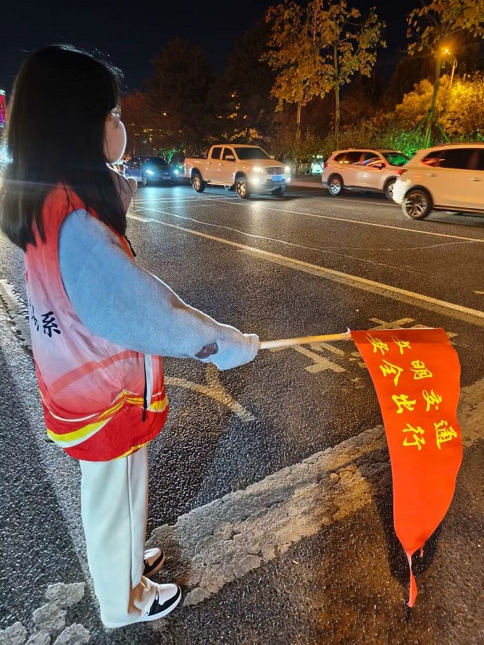 为保持道路交通良好秩序,创造安全有序的学校路段交通环境,提升文明城市形象,进一步推动“四个全民”活动走实走深,经济贸易系积极响应学校号召,组织向阳志愿服务队开展文明交通志愿服务活动。志愿者们于中午11:45-12:15和晚上17:30-18:00两个出行高峰时段,在我校西门口马路东西两侧及中间绿化带通道位置进行维护交通秩序志愿服务。大家手持红旗,认真协助交警维护好交通秩序,劝阻行人和非机动车严格遵守交通规则,并及时制止行人乱穿马路、...