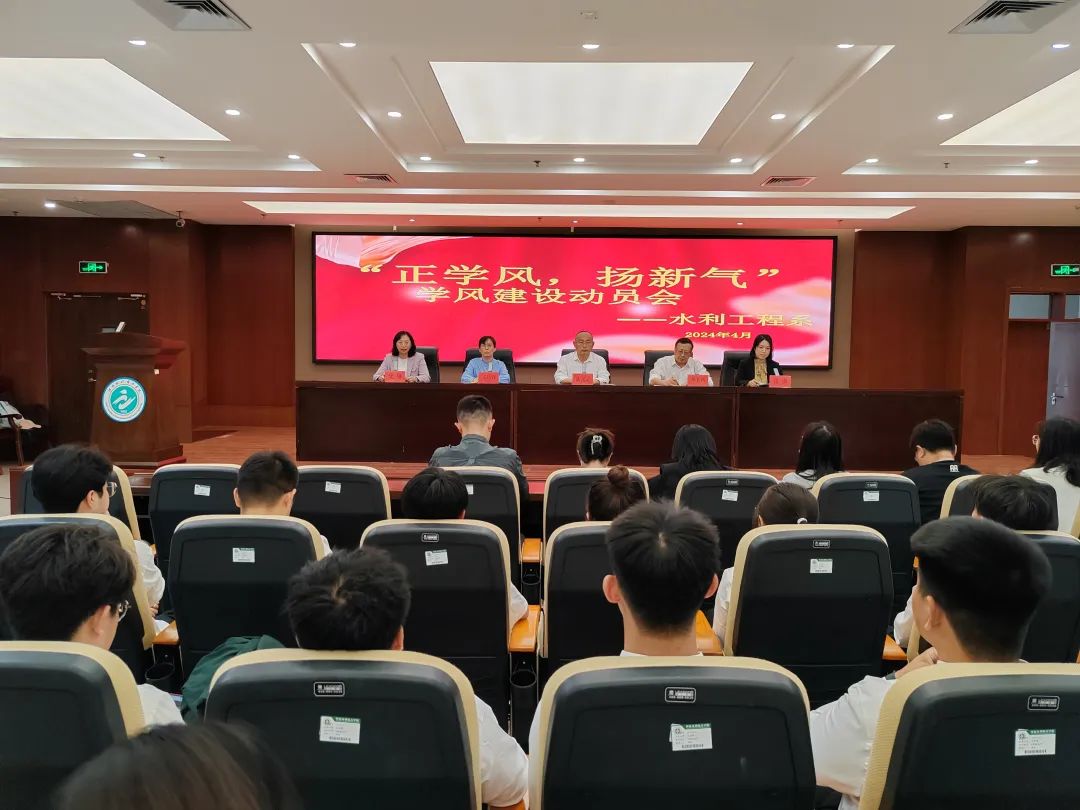 为进一步加强学风建设,为大学生成长成才营造良好的育人环境,增强学生学习的进取性和主动性,营造积极向上的学习氛围,近日,水利工程系在弘文守正楼学术报告厅召开“正学风,扬新气”学风建设动员大会。水利工程系党总支书记陈元才、系主任单长河、党总支副书记史琳、副主任王凤春、团委书记张南出席会议。单长河指出,学风建设是学校教育教学工作的重要组成部分,是提高学生综合素质、培养优秀人才的关键环节,必须高度重视学风建设,...
