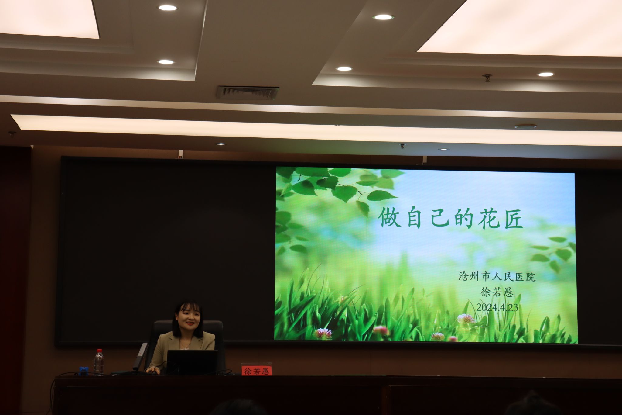 4月23日下午,我校党委学生工作部特邀沧州市人民医院精神康复科徐若愚医师为我校班级心理委员、心理辅导员做心理健康知识专题讲座,讲座由学工部副部长路鹏主持,全校师生200余人参加讲座。讲座以“做自己的花匠”为题,从我校师生的实际出发,结合典型案例对心理健康知识进行解读。徐若愚从学习、人际交往、情绪调节等方面进行了详细讲授。在讲座中,她鼓励同学们多多关注自身的积极资源与优势,探寻生命中的例外,以一小步的有效行动,...