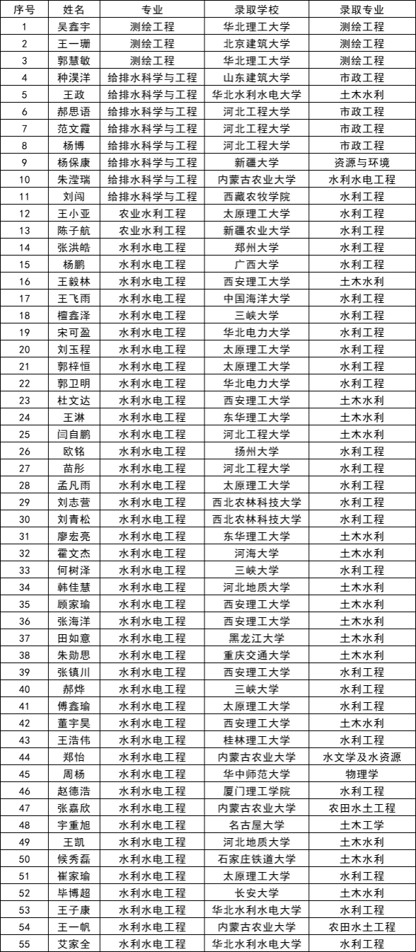 随着近期各高校硕士研究生招生复试工作的陆续完成,水利工程系2024届毕业生考研捷报频传,经统计,本次研究生考试共有55名同学通过复试,其中17名同学被河海大学、西北农林科技大学等国家“双一流”建设高校拟录取,实现了考研学生拟录取总人数和拟录取国家“双一流”建设高校人数上的双突破。水利水电工程专业2024届毕业生考研拟录取42人,占水电专业毕业生总数25.3%,曾获省级先进班集体荣誉称号的水电202002班,考研拟录取14人,...