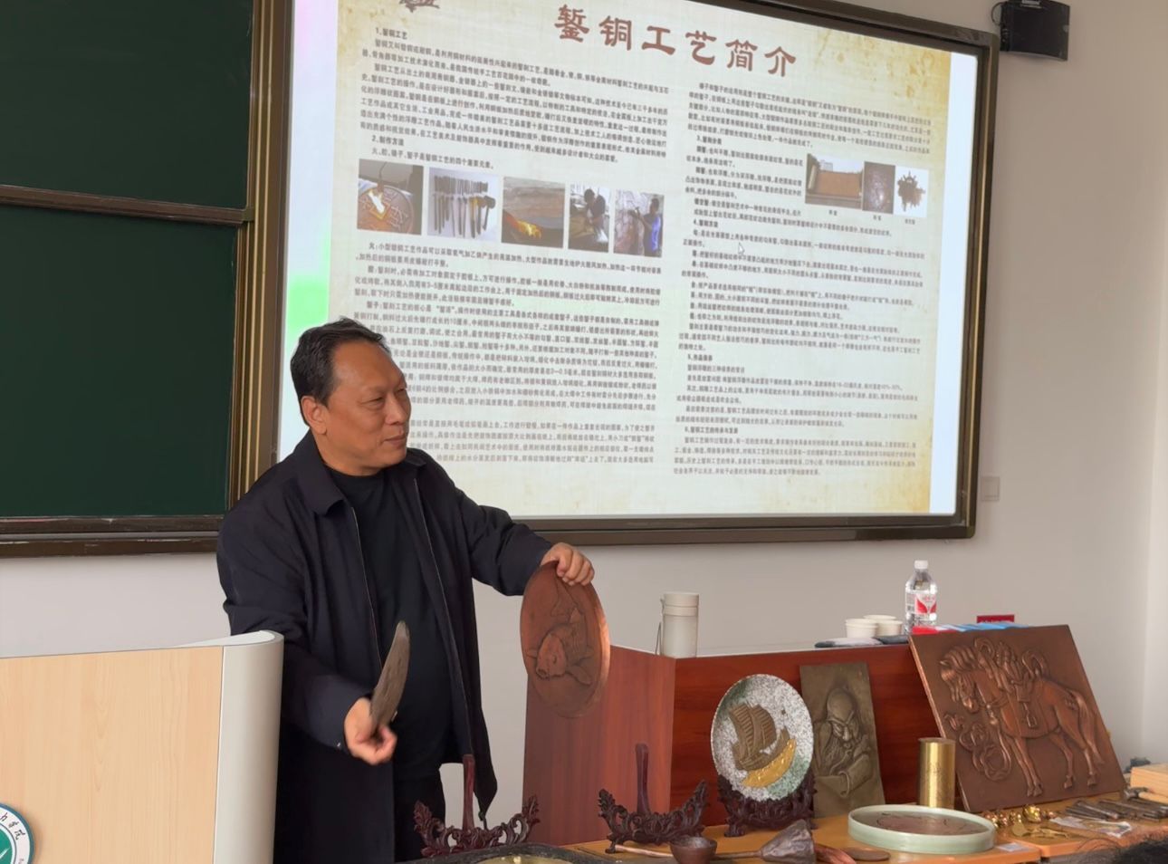 为弘扬工匠精神,提升青年大学生的审美能力和对中华传统工艺的认识,涵养情操,10月25日下午,电气自动化系邀请河北省级非遗“王厂錾铜浮雕”工艺项目第四代传承人、沧州市工艺美术协会会长王春周教授进行“体验錾铜工艺,感悟工匠魅力”工匠精神品读讲座。讲座中,王教授用朴实无华的语言解读了“工匠精神”和传统工艺的深刻内涵,用生动形象的案例分享了自己多年来“錾铜”人生的奋斗进取历程,亲自为学生示范了錾铜的全过程,并指导学生参与其中。...
