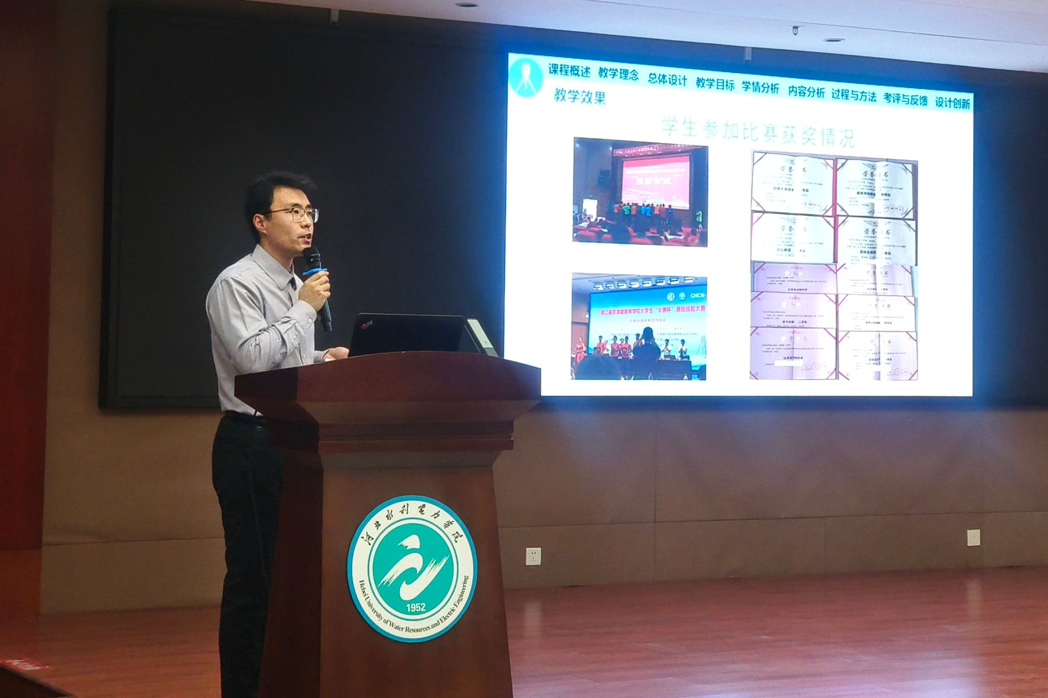为体现公平公正,大赛特别邀请了石家庄铁道大学杨茜教授、河北大学张红医教授和河北工业大学周围副教授担任评委,对第二环节的课程教学创新成果报告进行评审。比赛现场,各参赛队伍团结协作,就课程设计思路、教学改革与创新进行汇报,并展示相关过程性支撑材料。专家评委进行现场提问与交流,并提出建设性意见和建议。经过激烈角逐,大赛最终评选出课程思政组一等奖1名、二等奖1名、三等奖1名;副高及以下组一等奖2名、二等奖4名、三等奖7名;优秀组织奖2项(正高组只有1组参加,不设奖项)。
