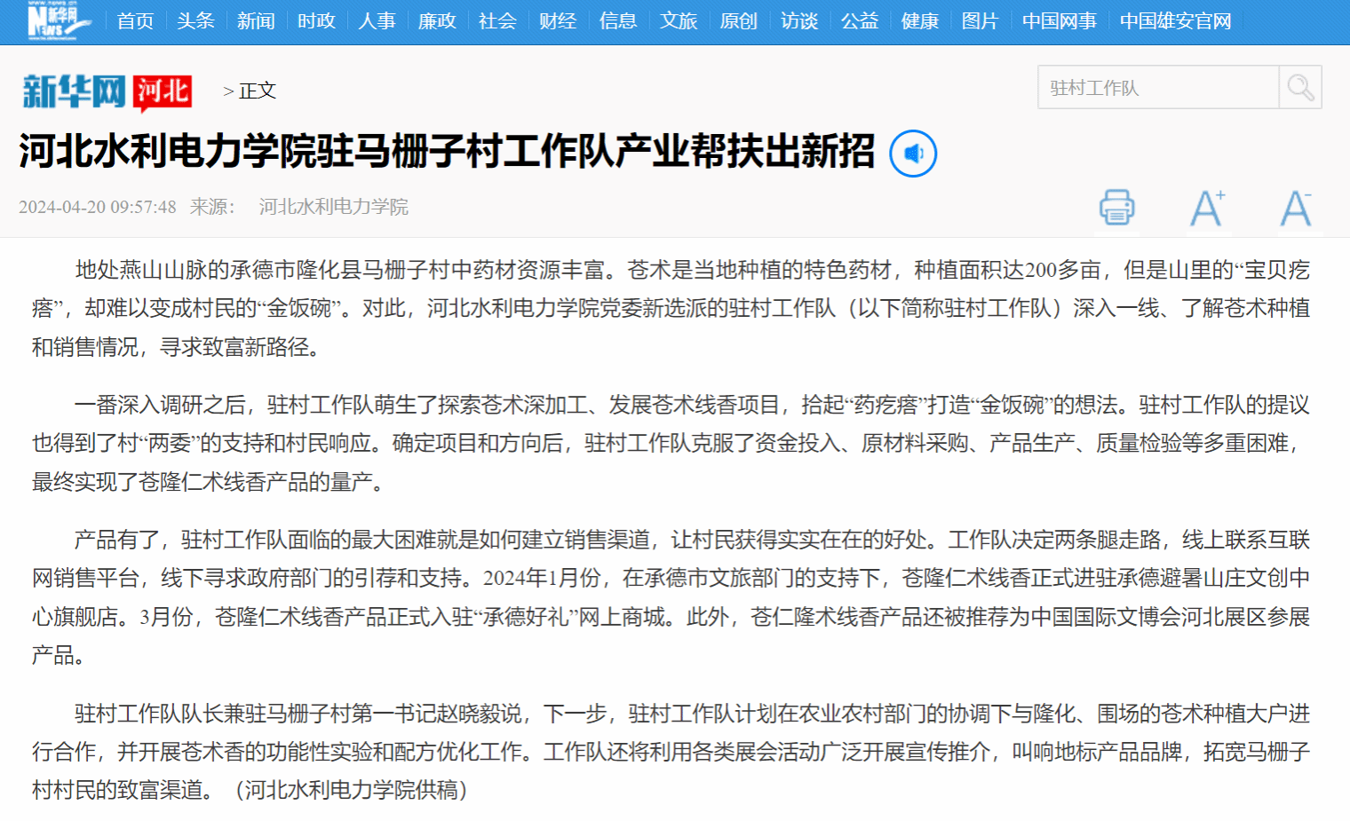 4月20日,新华网以《WB.COM驻马栅子村工作队产业帮扶出新招》为题,对我校驻村工作队产业帮扶事迹进行报道。