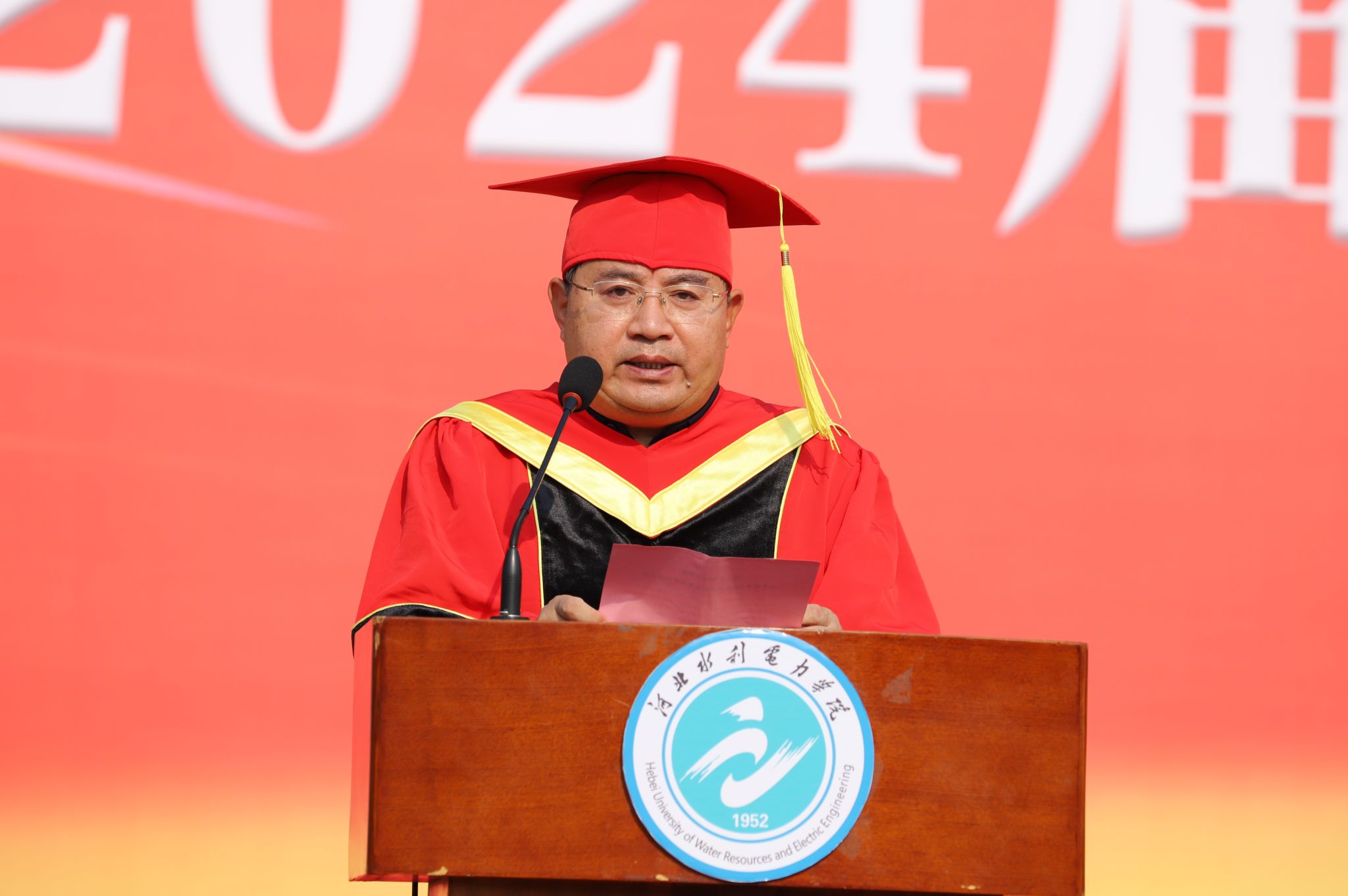 最后,王滨向2024届毕业生圆满完成学业表示热烈的祝贺,回顾了同学们极不平凡的四年大学生活以及学校的快速发展。王滨以“不负韶华致青春 扬帆起航向未来”作为临别赠言,对我校全体优秀学子提出了四点殷切期望和美好祝福。一是立鸿鹄之志,做大任之才;二是筑扛鼎之肩,修笃学之能;三是展奋斗之姿,踏锦绣之程;四是强身体之健,固拼搏之基。