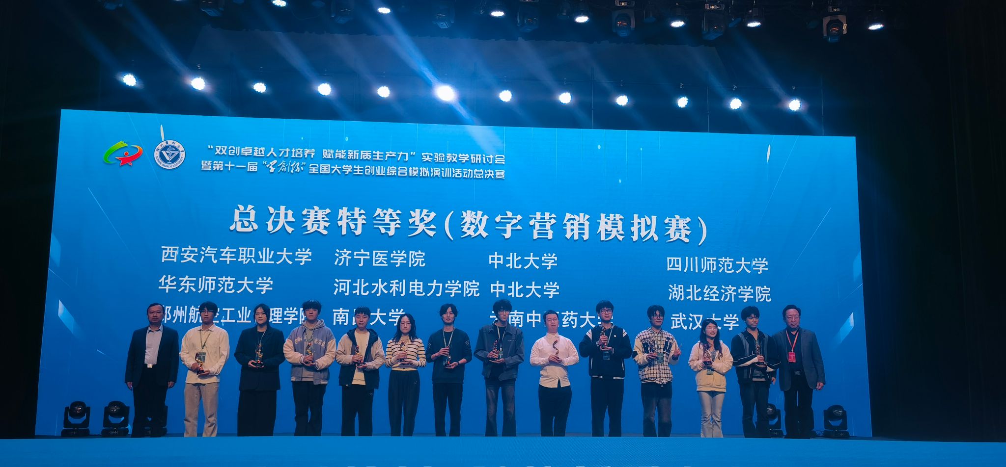 我校两支队伍入围现场决赛,经过与全国各校团队激烈角逐,电力工程系霍家豪、张皓淞、禹烁鹏团队获创业综合模拟赛项特等奖,交通工程系刘棋瑞、何天乐、李思瑾团队获数字营销模拟赛项特等奖,实现了我校此项赛事国赛特等奖零的突破,指导教师高波、张树红、卢楠、贾双分别获“最佳指导教师”。