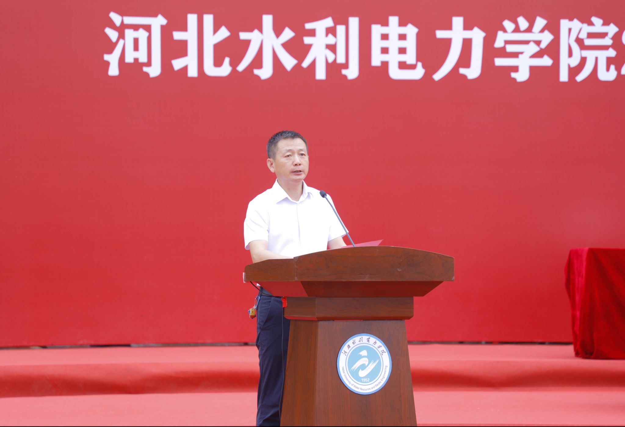 军训教官代表水利工程系水利水电工程202206班孔嘉硕代表全体教官作表态发言,表示必将高标准完成2025级新生军训任务。