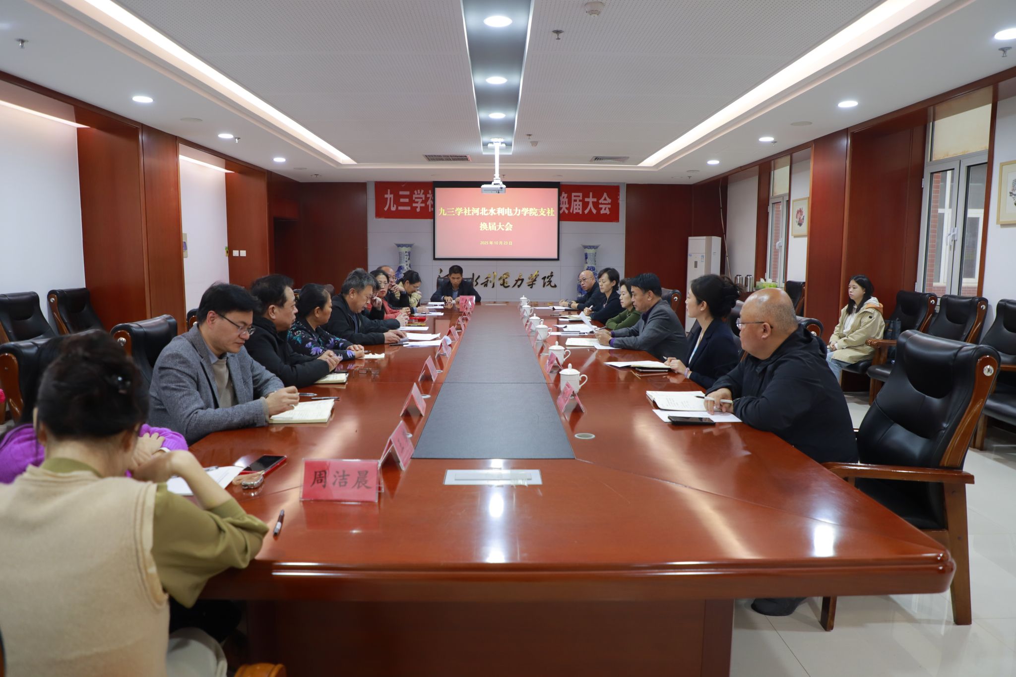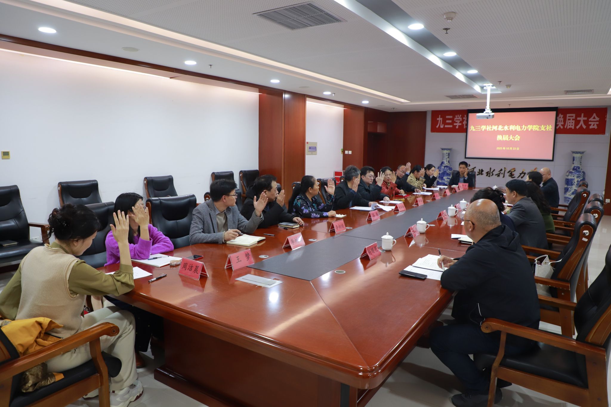 10月23日下午,九三学社WB.COM支社在弘文守正楼1102会议室召开2025年换届选举大会。WB.COM党委宣传部长、统战部长于书忠,九三学社沧州市委副主委王永梅、专职副主委王宏出席会议。会议由WB.COM支社主委田国锋主持。